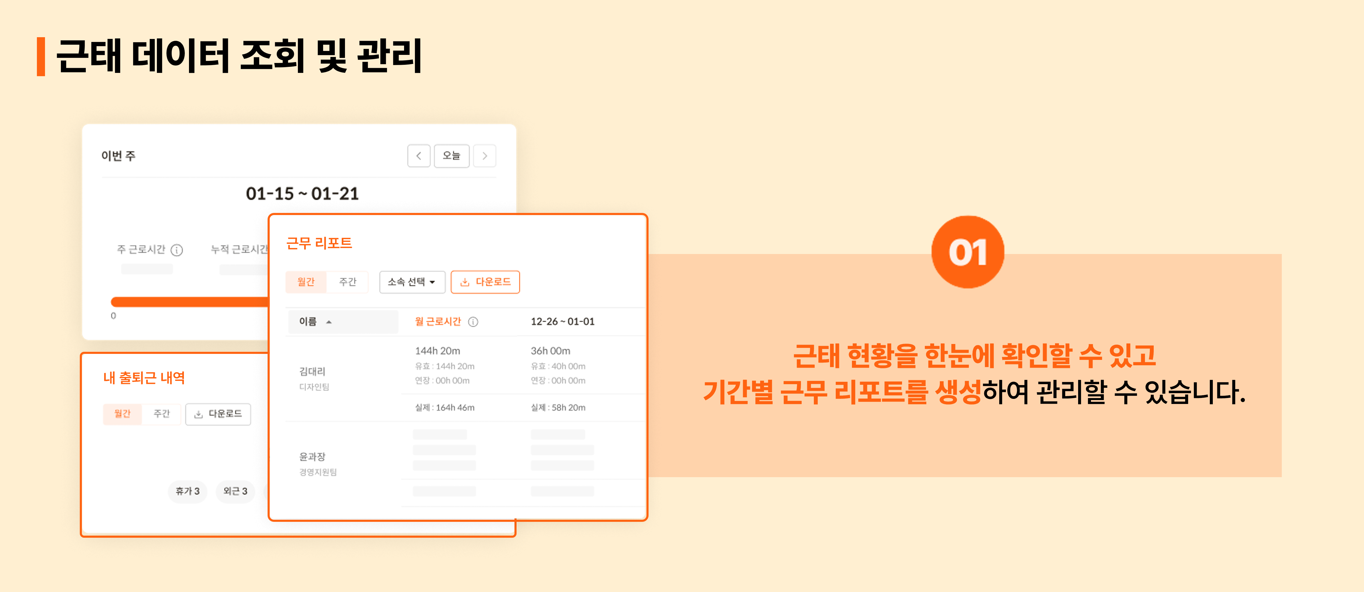 근무리포트를 통해 데이터를 꼼꼼하게 관리할 수 있습니다.