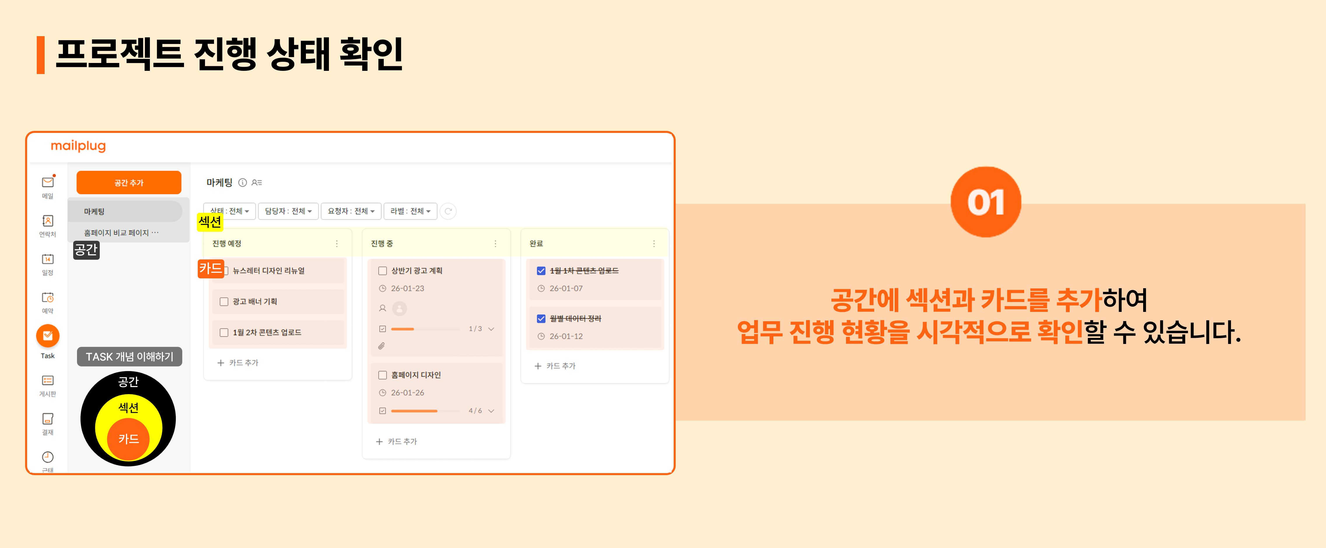 지금부터 메일플러그 Task의 주요 기능을 소개해 드리겠습니다.