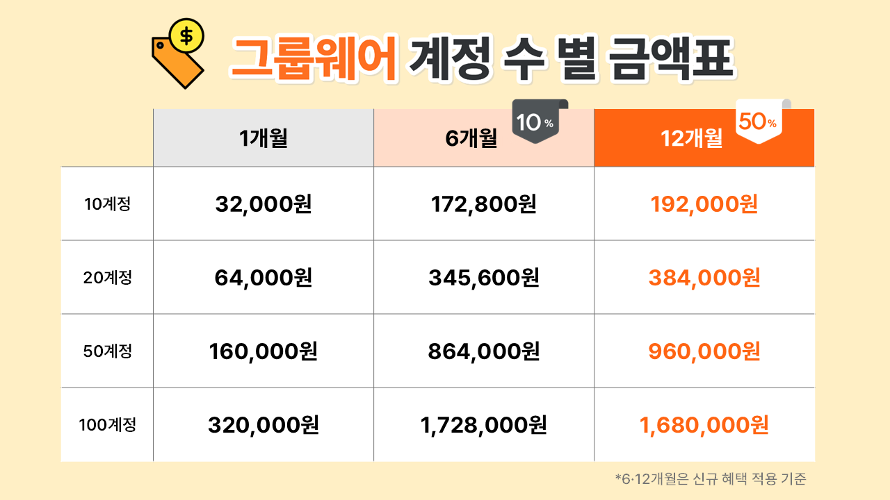 신규 12개월 결제 시, 50% 할인된 가격으로