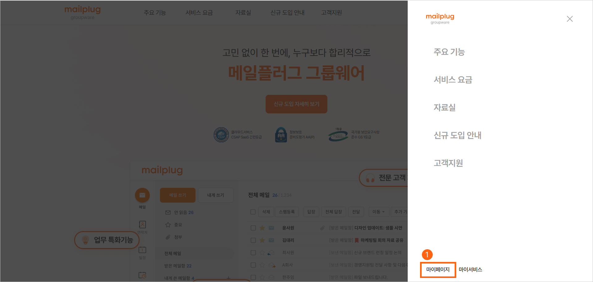메일플러그에서는 기업메일과 그룹웨어 상품을 제공하고 있는데요.