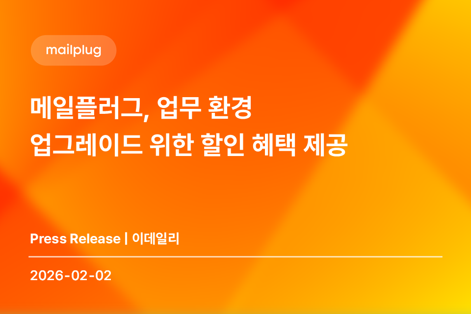 | [아시아투데이] 메일플러그 기업메일, 그룹웨어 50% 할인 프로모션 (0) | 2026.02.04 |