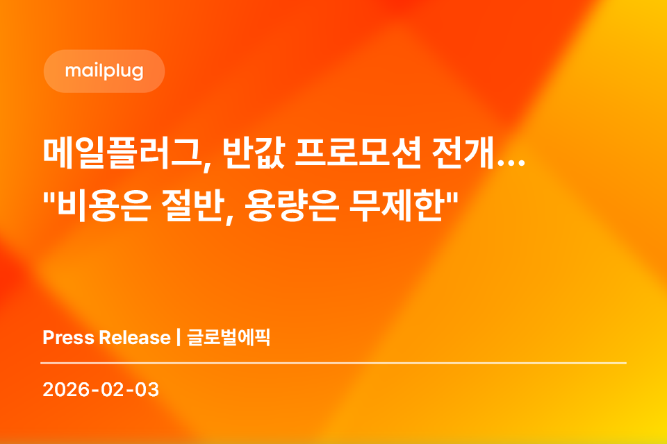 | [디지털타임스] 메일플러그, 그룹웨어·기업메일 50% 할인 진행… 비용 부담 절반으로 (0) | 2026.02.09 |