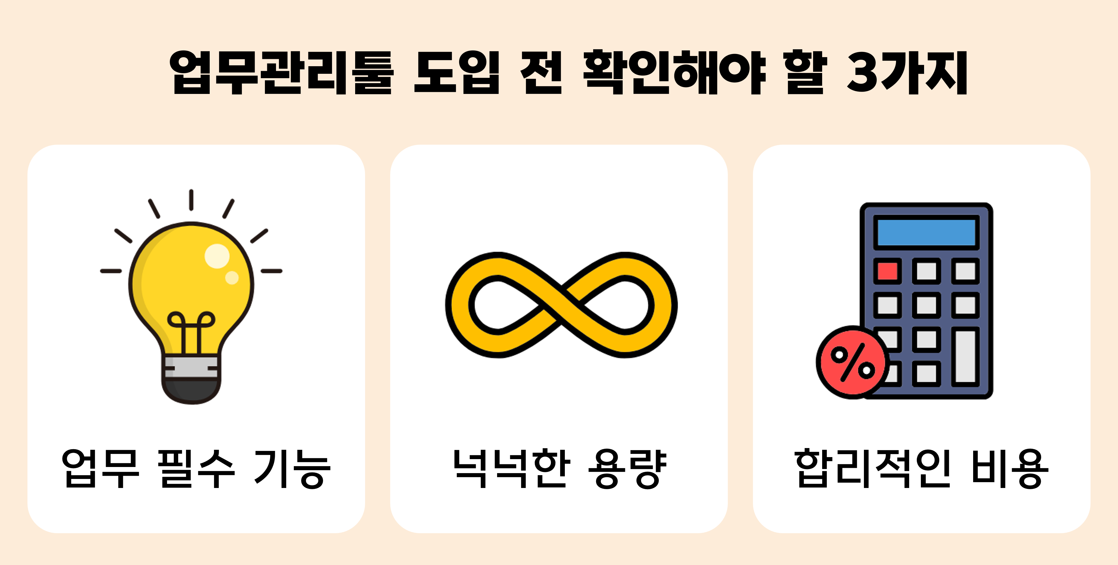 업무관리툴 도입 시에는 기능, 용량, 비용 등