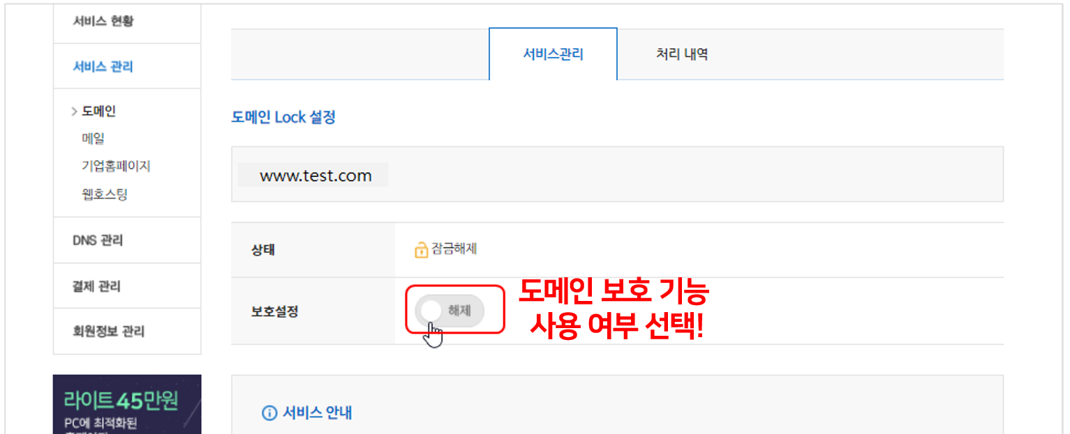 보호 기능을 통해 타인으로부터 도메인을 보호하고,