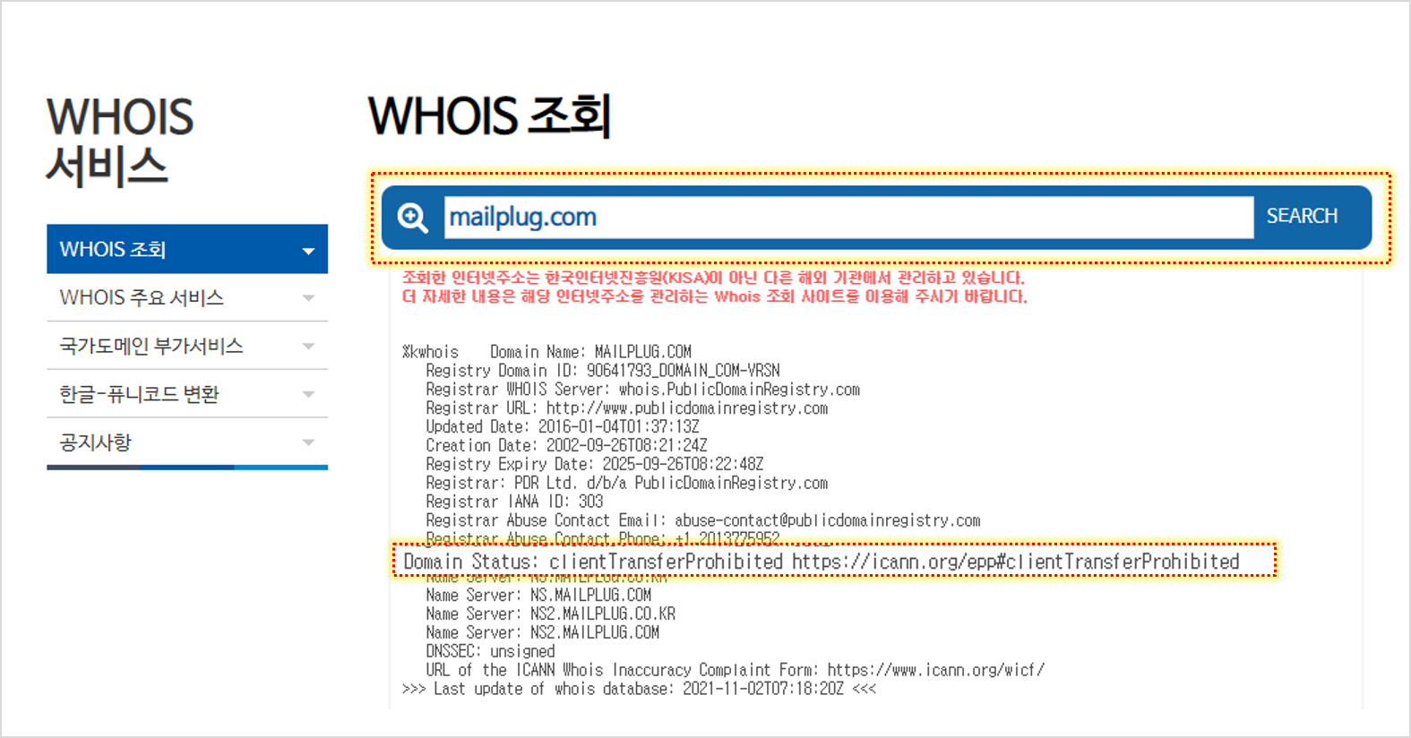 그렇다면, 도메인 보호 기능 설정 여부는 어떻게 확인할 수 있을까요?